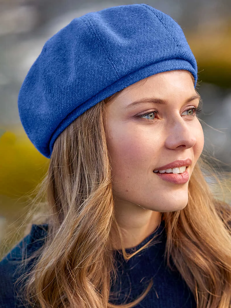 Für Charakterköpfe! Diese neue Winterkappe aus Schurwolle zeigt sich ganz pur und braucht weder Schirm noch sonstigen Schnickschnack, um gut auszusehen. Die Hutmacher von Millhouse & Co.fertigen sie aus leuchtend blauem Harris Tweed, einem besonders wertvollen Gewebe von der schottischen Insel Harris. Innen sorgt reine Baumwolle für angenehmes Tragegefühl. Achtteilige Form mit stoffbezogenem Pin obenauf. Die perfekte Ergänzung für das Lieblingsoutfit! Original Millhouse & Co.