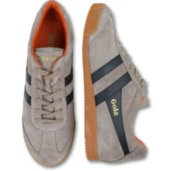 Einer der beliebtesten Sneaker Englands ist das Modell ‚Harrier‘ von Gola! Gelungenes, schlichtes Design im Retrolook gepaart mit tollen Trageeigenschaften – das ist es, was ihn zum Klassiker macht. Uns hat dieser Sneaker aus Veloursleder in seinem schönen Naturton besonders gut gefallen. Hingucker sind die blauen Kontraststreifen sowie das orangefarbene Futter. Ein leichter, modischer und zugleich zeitloser Sneaker zu einem unschlagbaren Preis! Farbe: Taupe. Original Gola.