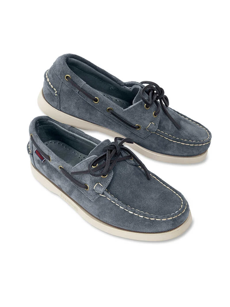 Der »Boat Shoe« von Sebago – sein Ruf, der weltweit beste und bequemste seiner Art zu sein, eilt ihm Seemeilen voraus. Seit mehr als 40 Jahren produziert Sebago ihre handgenähten Bootsschuhe und erfreut sich einer großen Fangemeinde. Aus softem Veloursleder, in der typischen Mokassinform und mit einer Lederschnürung, die eine perfekte Anpassung an den Fuß ermöglicht. Rutschfest wird’s durch die flexible, profilierte Gummisohle in aktuellem Weiß. Einfach reinschlüpfen in diesen sportiven und bequemen Klassiker, denn er ist angenehm leicht zu tragen und der perfekte Allrounder im Frühling. Farbe: Navy. Original Sebago.