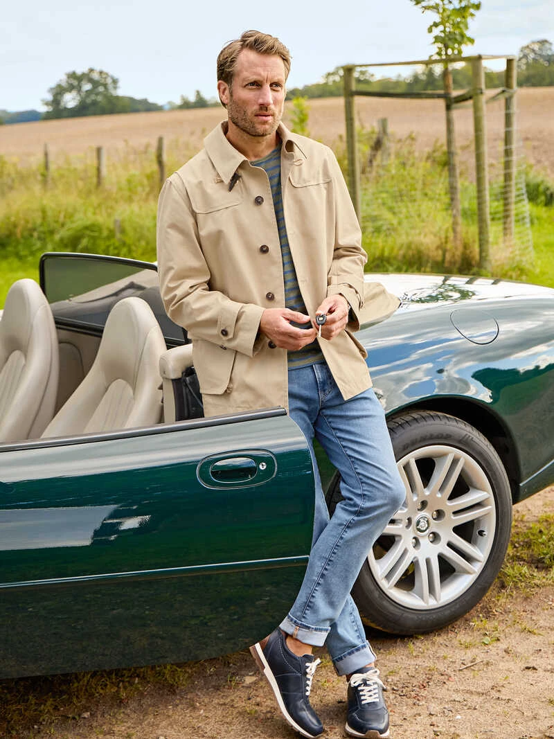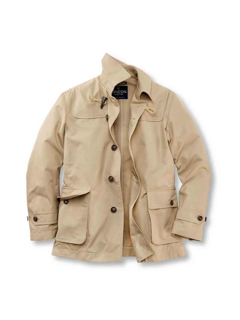 Stilvoll und »very British« durch den Sommer! In diesem coolen Mantel im unkonventionellen Mix aus Trench- und Dufflecoat kein Problem. Die inhabergeführte Manufaktur London Tradition fertigt seit 2001 im Londoner East End klassische britische Mäntel mit dem gewissen Etwas in einer beeindruckenden Qualität. So auch bei diesem Modell, das mit exklusivem Design und hochwertiger Ausstattung beeindruckt, wie dem typischen Knebelverschluss mit einem echten Hornknopf und den vier extra Knöpfen in Hornoptik zum Schließen des Mantels. Einem großen Kragen, effektvoll aufgenähten Schulterpassen, zwei geräumigen, aufgesetzten Pattentaschen mit Knöpfen und verstellbaren Ärmelriegeln zum Knöpfen. Mit zwei Innentaschen. Normale Passform (Regular Fit). Länge ca. 79 cm. Farbe: Beige. Original London Tradition. Made in London.