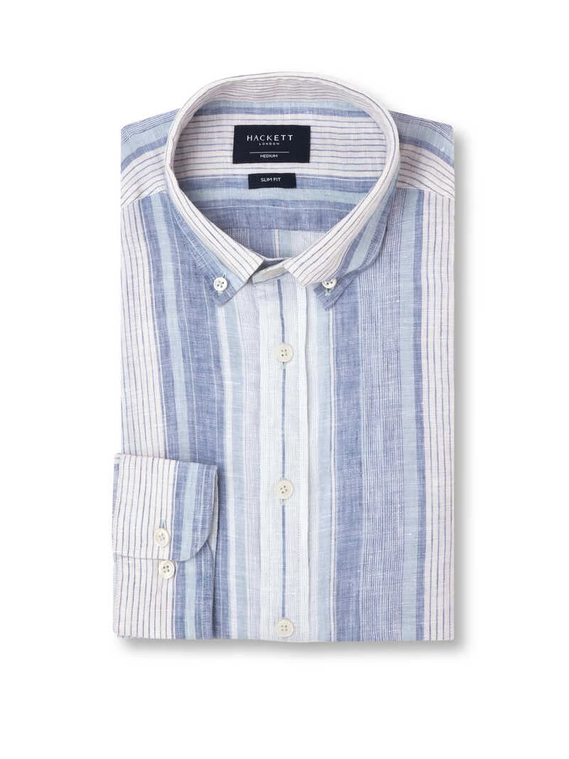 Eins vorweg: Dieses Leinenhemd müssen Sie nicht unbedingt bügeln! Seinen legeren Charme entfaltet es vor allem durch seine gewollten, charakteristischen Edelknitter. Und da dieses Hemd komplett aus Leinen besteht, ist es bei Hitze einfach unschlagbar. Die Faser selbst kühlt schön und die lockere Gewebestruktur trägt sich sehr angenehm. Frische, maritime Streifen machen den Sommerlook perfekt. Mit »Button Down«-Kragen, verstellbaren Manschetten sowie aufgesetzter Knopfleiste. Übrigens sieht dieses Hemd mit gekrempelten Ärmeln noch lässiger aus. Ohne Brusttasche. Normale, schlanke Passform (Modern Fit). Farbe: Blau-Weiß. Original Hackett, London.