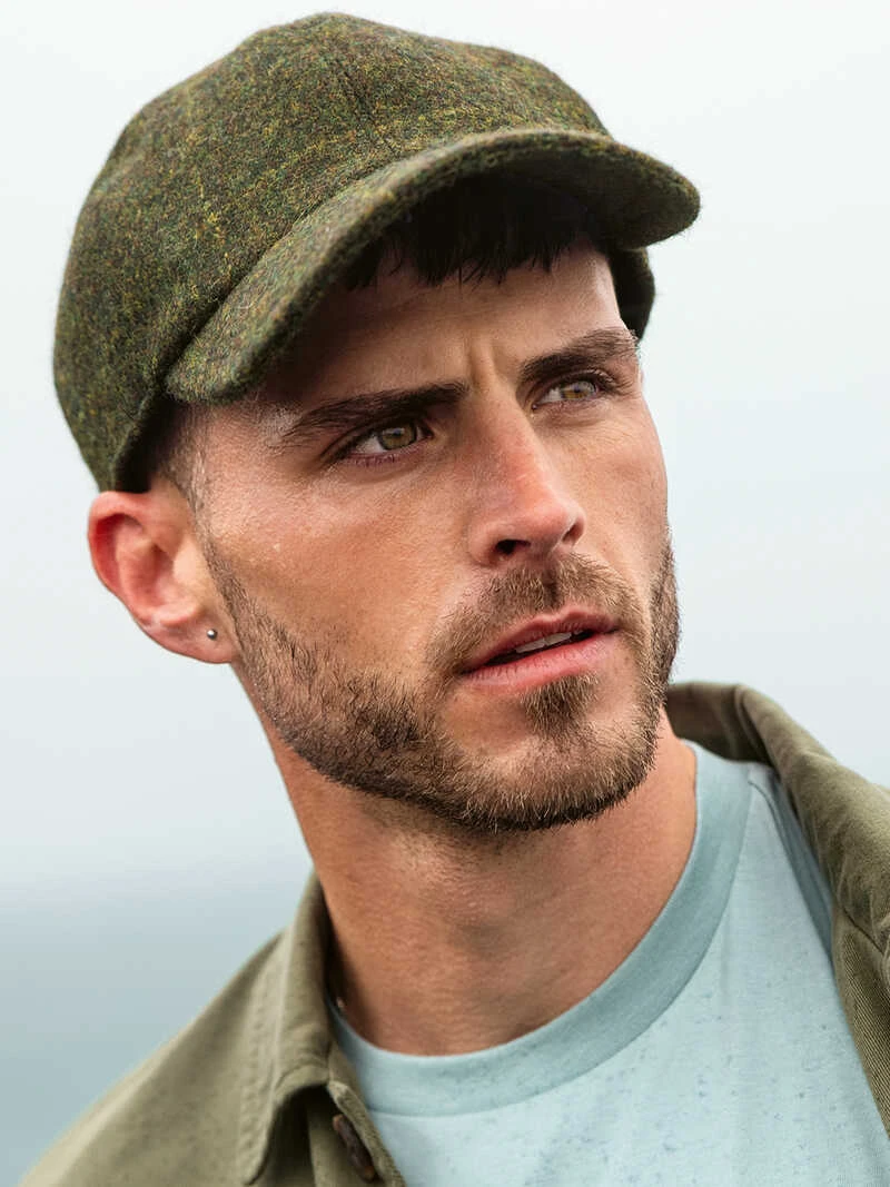 Eine Baseball Cap mit Charakter! Der robuste, olivfarbene Tweed der Kappe stammt von der irischen Weberei John Hanly. Flauschig-weiches Fleecefutter wärmt angenehm und der Ohrenschutz zum Herausklappen ist bei kalten Temperaturen Gold wert! Komplett gefüttert. Farbe: Oliv. Original John Hanly. Woven in Ireland.