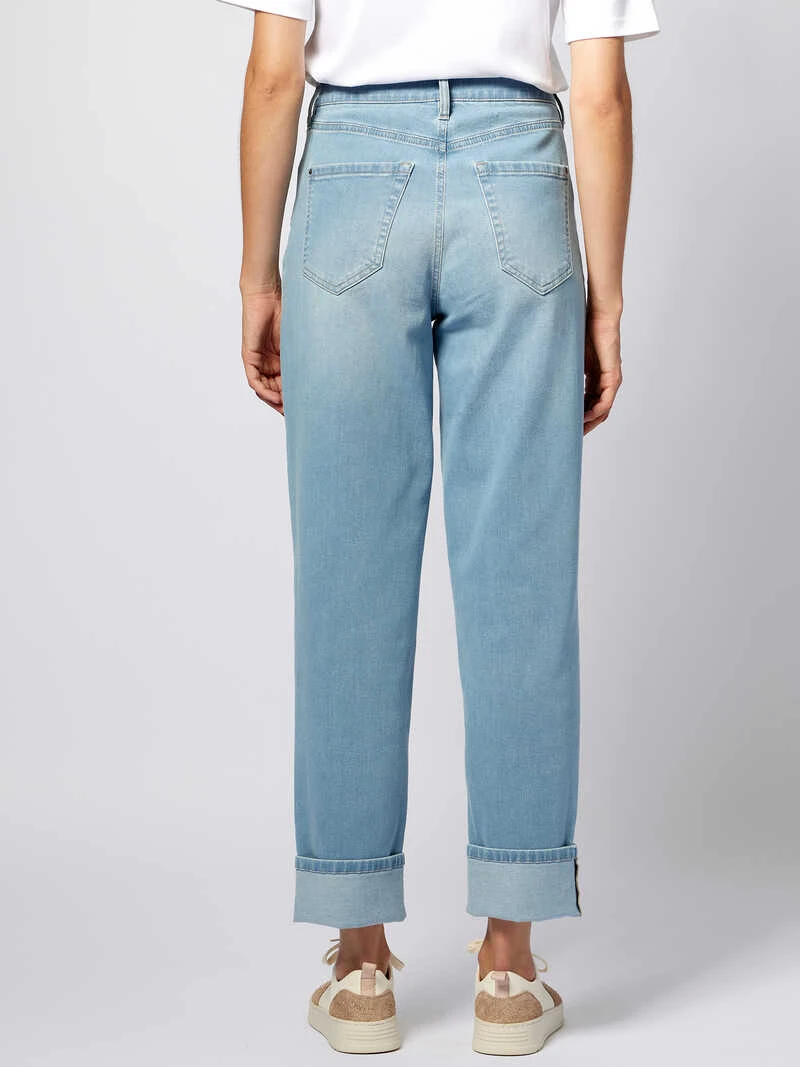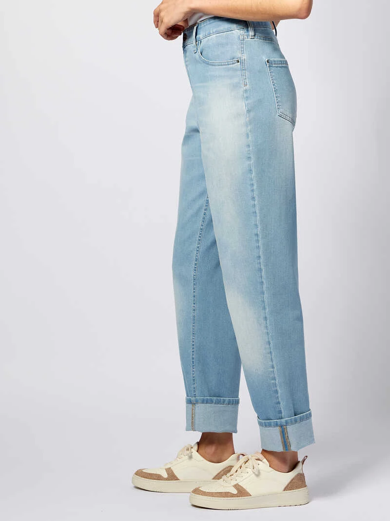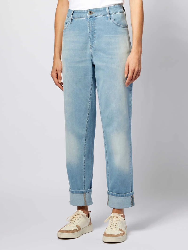 Diese Jeanshose im modernen »Boyfriend«-Style könnte kaum lässiger sein! Charakteristisch ist ihr lockerer, weiter Schnitt, der sie superbequem macht. Diese weite, lockere Hosenform passt allen Figurtypen, ganz gleich, ob man schmale oder weibliche Hüften besitzt. Perfekt für den Sommer ist die junge, helle Waschung mit dem leichten Used-Effekt und der modisch breite Saumumschlag. Eine legere und stylische Sommerjeans – einfach anziehen und wohlfühlen! Weite Passform (Modern Fit). Fußweite ca. 41 cm; umgeschlagene Beininnenlänge ca. 68 cm. Farbe: Blue Denim. Original Charles Robertson.