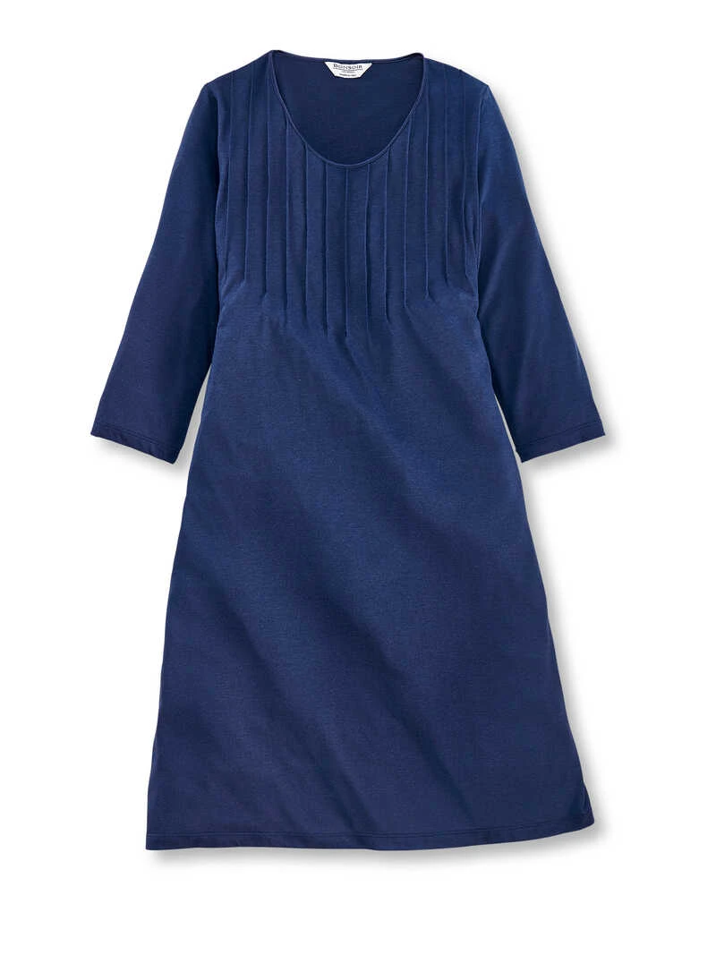 Unvergleichlich weich und geschmeidig umhüllt dieses Nachthemd aus edel fließendem Jersey Ihre Figur! Es stammt aus dem englischen Traditionshaus Bonsoir of London, seit 1926 bekannt für Nachtwäsche aus allerfeinsten Materialien. Die leicht schmeichelnde A-Linie ist herrlich bequem und entsteht durch die zart abgesteppten Biesen im Oberteil, die dem Nachthemd einen femininen Touch verleihen. In knieumspielender Länge, mit 3/4-Ärmeln und femininem Rundhalsausschnitt. Dieses exquisite Nachthemd in seinem umwerfenden Midnight Blue lässt Sie tagsüber gut aussehen und nachts traumhaft schlafen! Ausgestellte Passform (Comfort Fit). Länge ca. 103 cm. Farbe: Midnight Blue. Original Bonsoir, London.