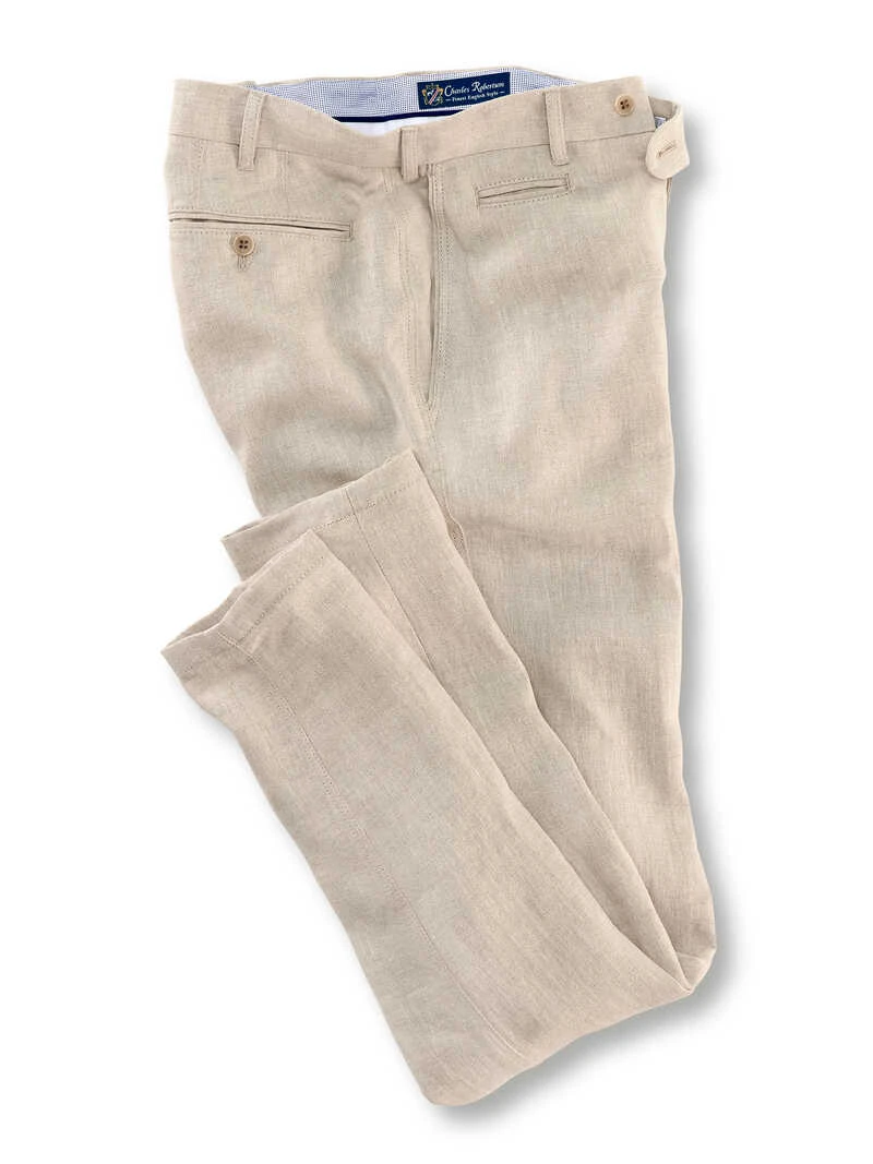 Die Auszeichnung »Hochsommertauglich« bekommt diese luftige Leinenhose mit links! Sie ist aus besonders hochwertigem, irischem Leinen gefertigt, das sich angenehm kühl anfühlt und schön leicht ist. Durch die typischen Edelknitter und die körnige Optik bekommt sie einen lässigen Look. Das Tuch stammt vom irischen Edelweber »Emblem Weavers«, der bereits seit über 50 Jahren exklusive Stoffe in bester Handwerkskunst herstellt. Mit seitlichen Schubtaschen, Münztasche, zwei geknöpften Gesäßtaschen und änderungsfreundlichem Bund mit Gürtelschlaufen. Diese herrlich bequeme Hose besitzt die Leinenfarbe schlechthin: helles Sand, was zu nahezu allen Sommeroberteilen vortrefflich harmoniert! Normale Passform (Regular Fit). Fußweite ca. 39 cm. Farbe: Sand. Reines Leinen. Gewebe von Emblem Weavers. Gefertigt von Charles Robertson.
