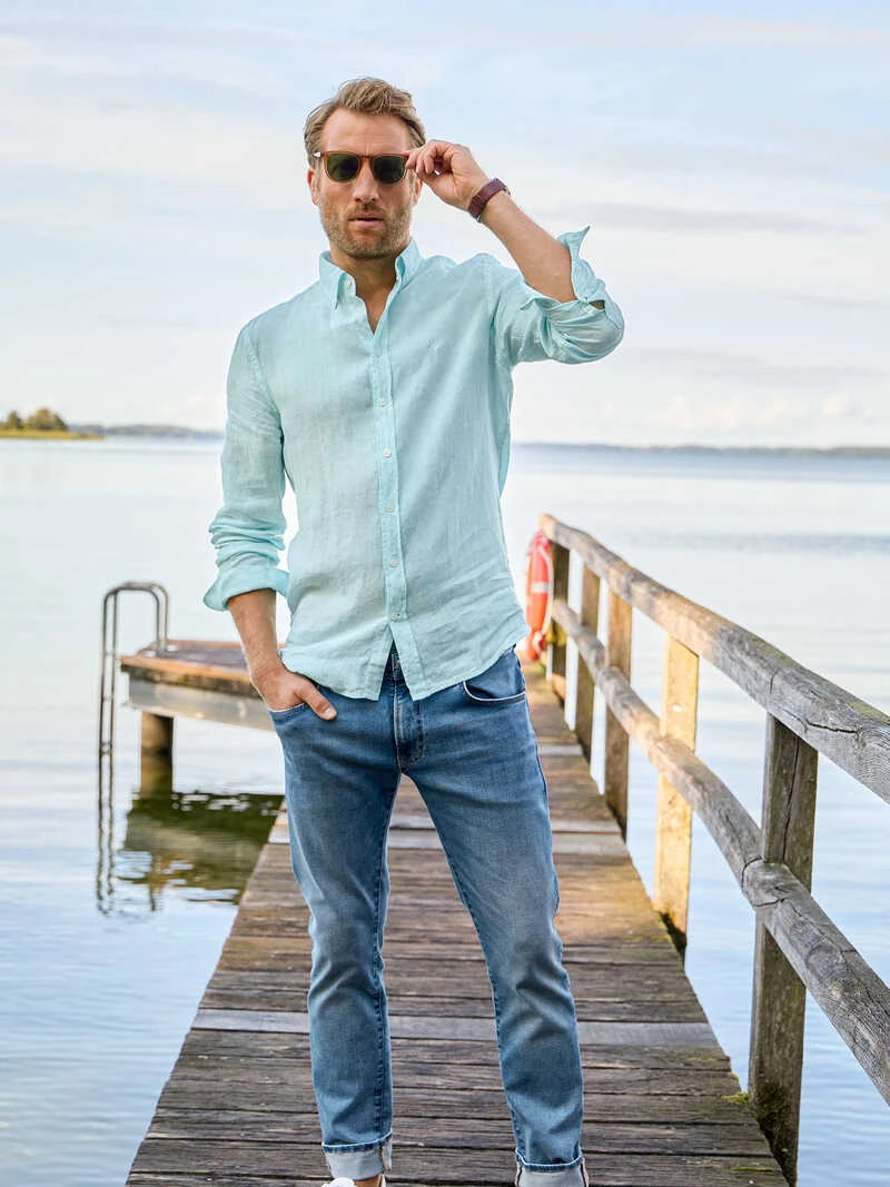 Seinen legeren Charme entwickelt dieses Hemd aus purem, körnigem Leinen vor allem durch seine charakteristischen Edelknitter! Und Leinen bietet immer noch die beste Antwort auf Hitze, denn es ist herrlich kühlend und leicht. Dieses Hemd gibts in frischem Mint und Rosé, zwei Trendfarben des Sommers! Ein lässiger Vintage-Look und eine besonders weiche Haptik entstehen durch die Veredelung mit der »Garment Dyed«-Technik, der Färbung des bereits fertig genähten Hemds. Mit »Button Down«-Kragen, aufgesetzter Knopfleiste, gerundetem Saum, verstellbaren Manschetten und Stickerei auf der Brust. Keine Brusttasche. Normale, schlanke Passform (Modern Fit). Farbe: Mint. Original Hackett, London.