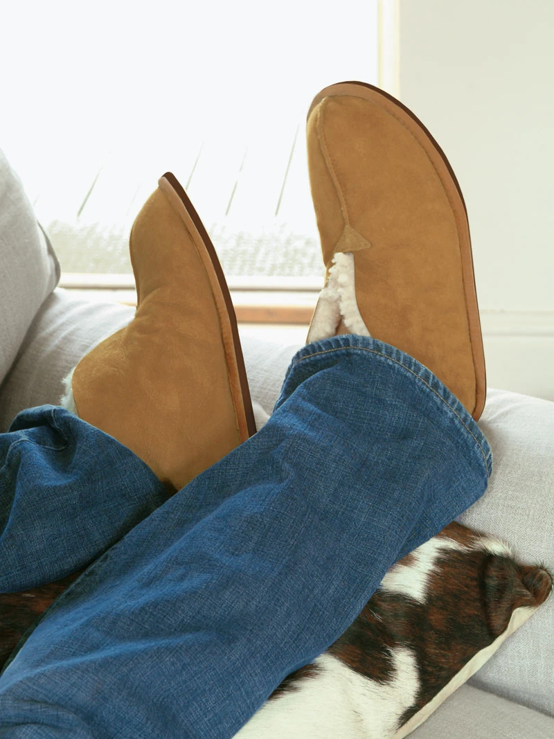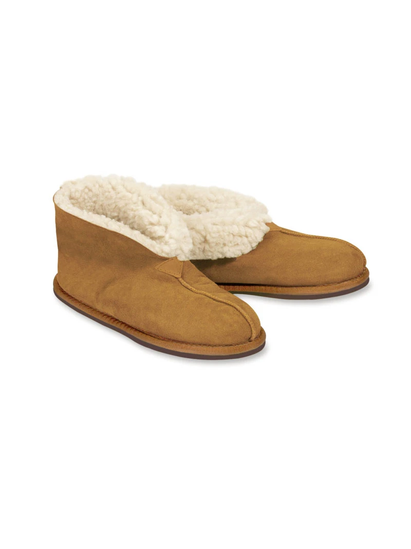 Einmal angezogen, möchte man diese herrlich bequemen, angenehm wärmenden ‚Celt‘-Hausschuhe aus echtem Lammfell eigentlich nicht mehr ausziehen, bis der Winter vorüber ist. Denn etwas Besseres als diese handgearbeiteten Schuhe aus natürlichem Lammfell kann einem gegen die Kälte kaum begegnen. Das Fell stammt von eigens gezüchteten englischen Schafen und wird in den Räumen des kleinen, aber feinen Handwerksbetriebes in Newquay in der Grafschaft Cornwall verarbeitet. Seit 15 Jahren stellt ‚The Original Celtic Sheepskin Co.‘ die Lammfell-Slipper für Kunden in aller Welt her und machte sich schnell einen guten Namen. Alle Arbeitsschritte erfolgen sehr sorgfältig und liebevoll von Hand. So sitzen die ‚Celt‘-Slipper gut am Fuß, sind extrem langlebig und pflegeleicht. Je nach Bedarf kann man den ‚Kragen‘ wärmend hochlassen oder nach außen umklappen. Der Schuh ist ein wahres Leicht gewicht. Die Sohle aus festerem Kunststoff macht es aber auch möglich, dass Sie schnell einmal hinaushuschen können, ohne gleich nasse Füße zu bekommen. In der Farbe ‚Caramel‘ mit wollweißem Innenleben. Original Celtic & Co. Made in Cornwall. Für Damen und Herren.