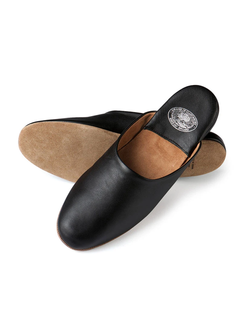 Feinstes, weiches Kalbsleder bildet die Grundlage für diese typisch britischen, exklusiven Hausschuhe von Draper of Glastonbury. Die sehr flexible Lederlaufsohle sowie die gepolsterte Innensohle sorgen für allerbeste Trageeigenschaften. Der Slipper ist innen komplett ledergefüttert. Farbe: Schwarz. Made in England. Original Draper of Glastonbury.