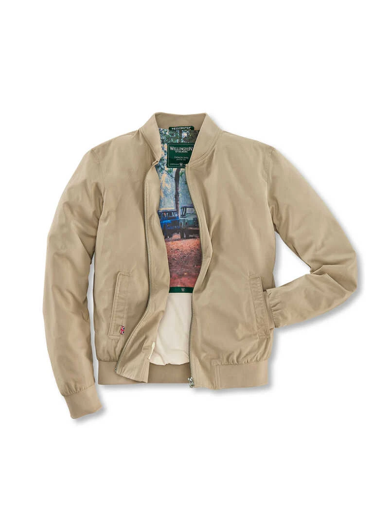 Ein sportiver Blouson wie dieser ist unkompliziert, modern und zeitlos! Vorgewaschenes Gewebe mit hautfreundlicher Baumwolle, strapazierfähigem Polyester und Polyamid machen den »englischen Lumber« wasser- und windabweisend und trotzdem atmungsaktiv. Seine samtig weiche Oberfläche erhält das Modell durch ein spezielles Finish. Wirklich außergewöhnlich ist der Blick ins Innere: Ein großflächiges »Off Road-Print« macht das Futter zum absoluten Blickfang. Ausgestattet mit Rippenstrick am Collegekragen, den Ärmeln und dem Saum; mit zwei Leistentaschen und drei Innentaschen. Mit Reißverschluss zu schließen. Normale Passform (Regular Fit). Länge ca. 68 cm. Farbe: Sand. Original Wellington of Bilmore.