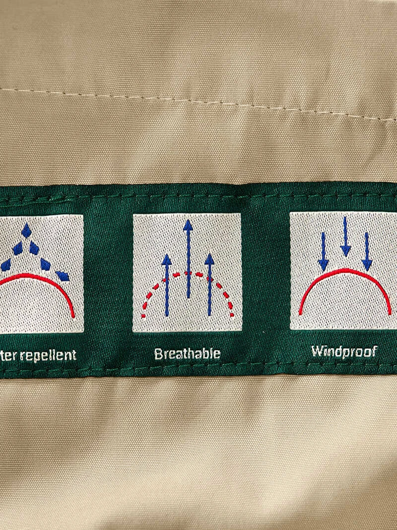 46 % Baumwolle, 40 % Polyester, 14 % Polyamid. Futter: 70 % Polyester, 30 % Baumwolle. Ärmelfutter: 100 % Polyester.