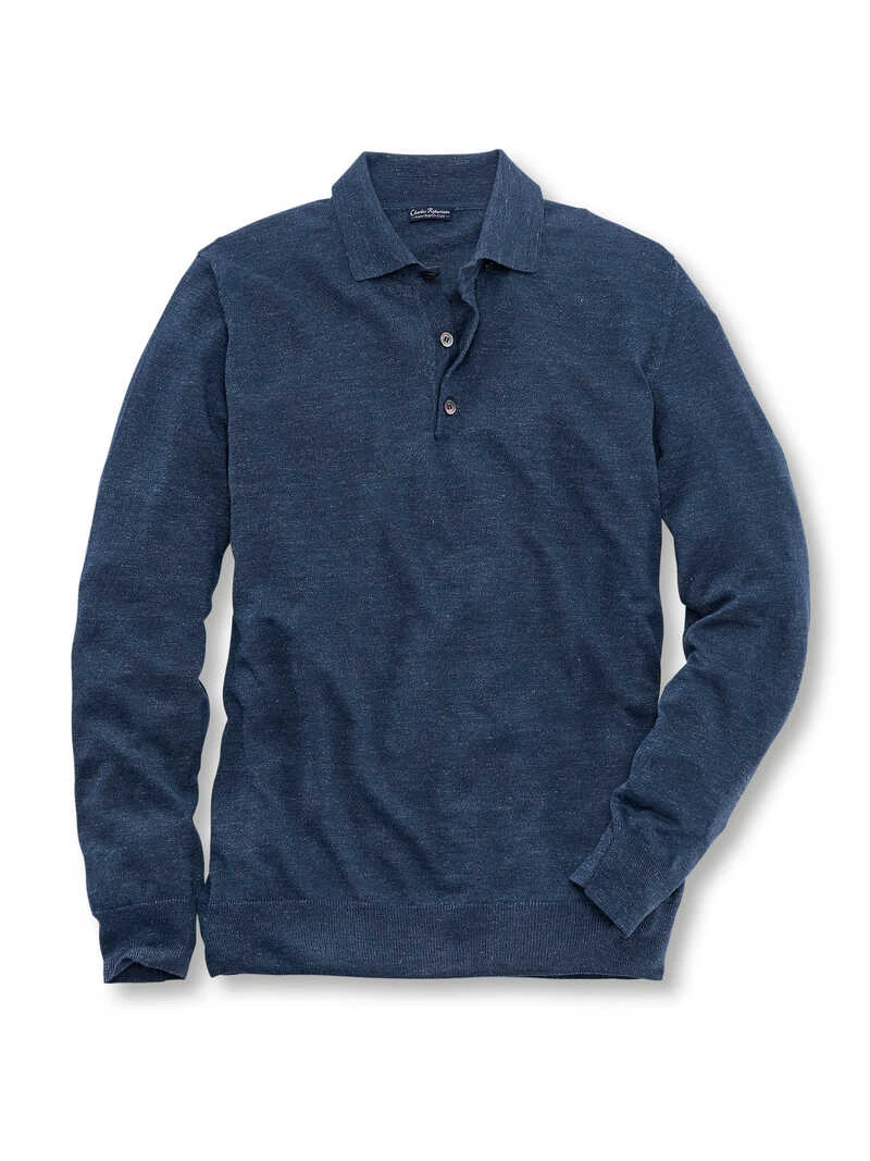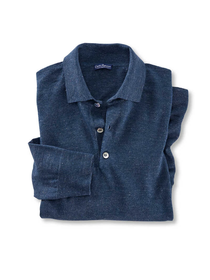 Dieser leichte Sommerpullover besitzt die typischen Merkmale eines Polos, wie den Kragen mit der kurzen Knopfleiste, und bekommt dadurch einen sportiven Touch! Das lässige Navy-Melange unterstreicht optisch die Leichtigkeit und macht den Pulli zum Blickfang. Ein hoher Leinenanteil, der wunderbar kühlend wirkt, mischt sich mit weicher Baumwolle – der perfekte Mix für warme Tage und zudem sehr hochwertig. Ärmel- und Saumbündchen im Rippenstrick unterstreichen den Casual-Look. Mit drei Knöpfen in Perlmuttoptik. Normale Passform (Regular Fit). Farbe: Navy-Melange. Original Charles Robertson.