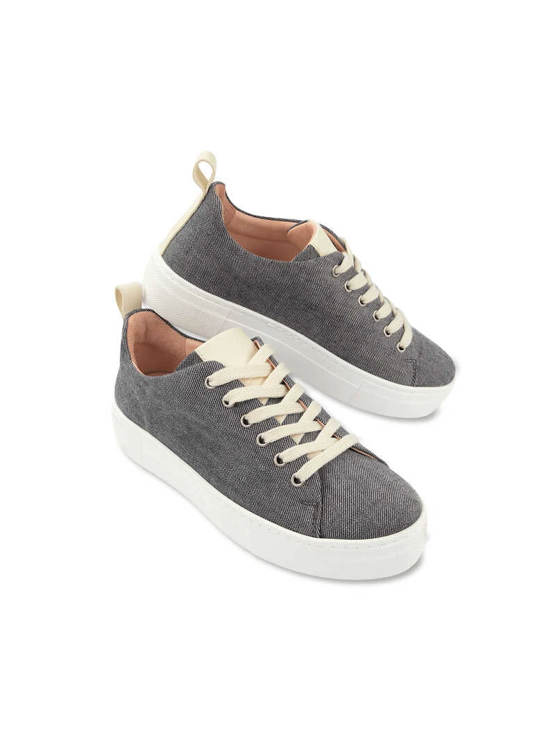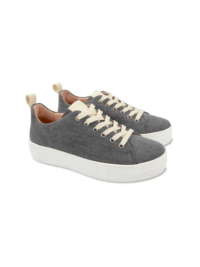 Lässiges Leinen in Denimoptik und supersoftes Leder innen! Dieser Sneaker begeistert durch seinen cleanen Auftritt in Denimblau und sportiven Kontrasten durch die weiße Plateausohle und die Schnürsenkel. Innen ist er komplett mit weichem Leder ausgestattet. Und wie man es von Robertson Natural kennt, ist auch dieses Modell ökologisch hergestellt. Alle Leder werden in Deutschland pflanzlich gegerbt und sind schadstofffrei. Mit herausnehmbarer Sohle, gepolstertem Schaftrand und Anziehschlaufe. Farbe: Denimblau. Original Robertson Natural.