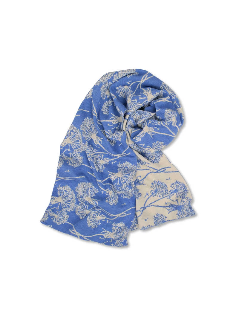Mit seinem zauberhaften Pusteblumen (Dandelion)- Motiv in zartem Bleu mit Ecru bringt dieser leichte Schal Farbe in den Frühling! Raffiniert wirds beim Tragen, denn dann zeigt sich das gegengleiche Muster der Rückseite. Eine Spezialität des irischen Stricklabels McKernan. Der sehr feine, leichte Leinen-Baumwoll-Mix ist wunderbar für den Frühling oder kühlere Sommertage. Ein lässiger Blickfang in jedem Ihrer Outfits! Größe 175 x 30 cm. Farbe: Bleu-Ecru. Original McKernan. Made in Ireland.