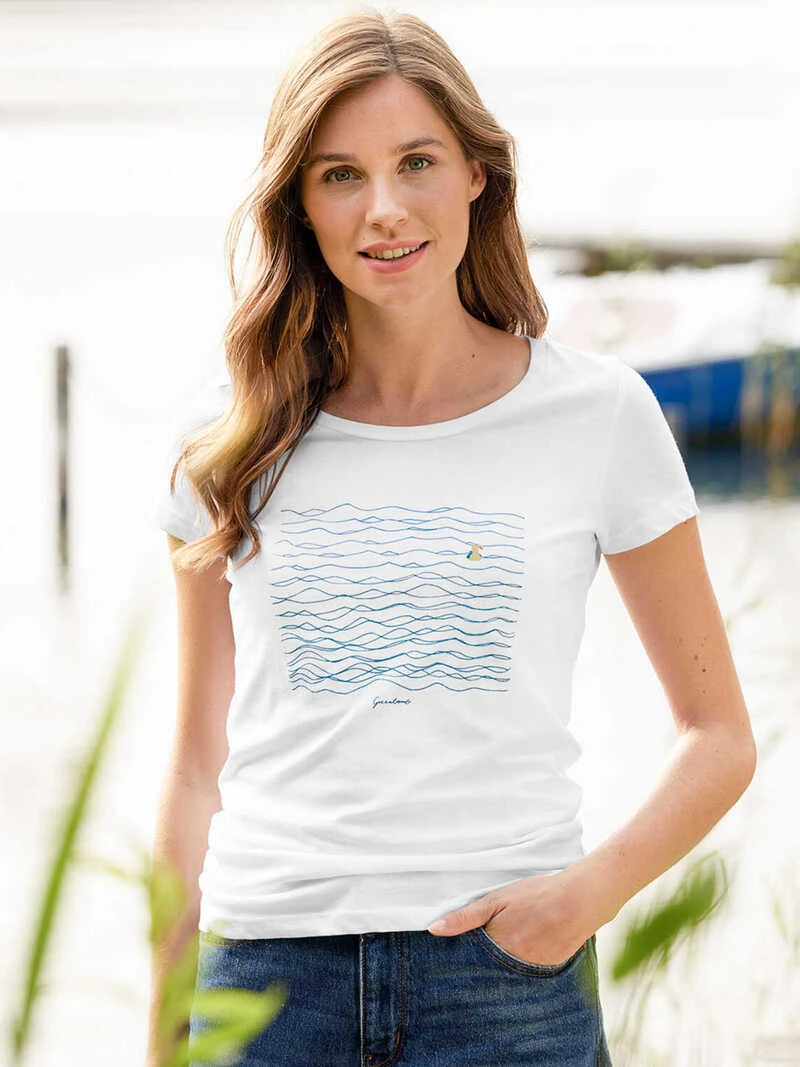 Lässiges Design wird beim Label Greenbomb mit Nachhaltigkeit kombiniert! Herauskommen solch wunderbare Stücke wie dieses weiße T-Shirt aus wunderbar leichtem Jersey in bester Bio-Baumwolle. Eine Möwe in den Wellen als Print auf dem Vorderteil. Die kürzeren Ärmel sind topaktuell und unterstreichen den leichten Sommerlook dieses Shirts. Übrigens ist die Marke sogar GOTS-zertifiziert; dieses wichtige Textilsiegel steht für faire und nachhaltige Mode! Mit Rundhals; leicht taillierte Passform (Modern Fit). Länge ca. 68 cm. Farbe: Weiß. Original Greenbomb.