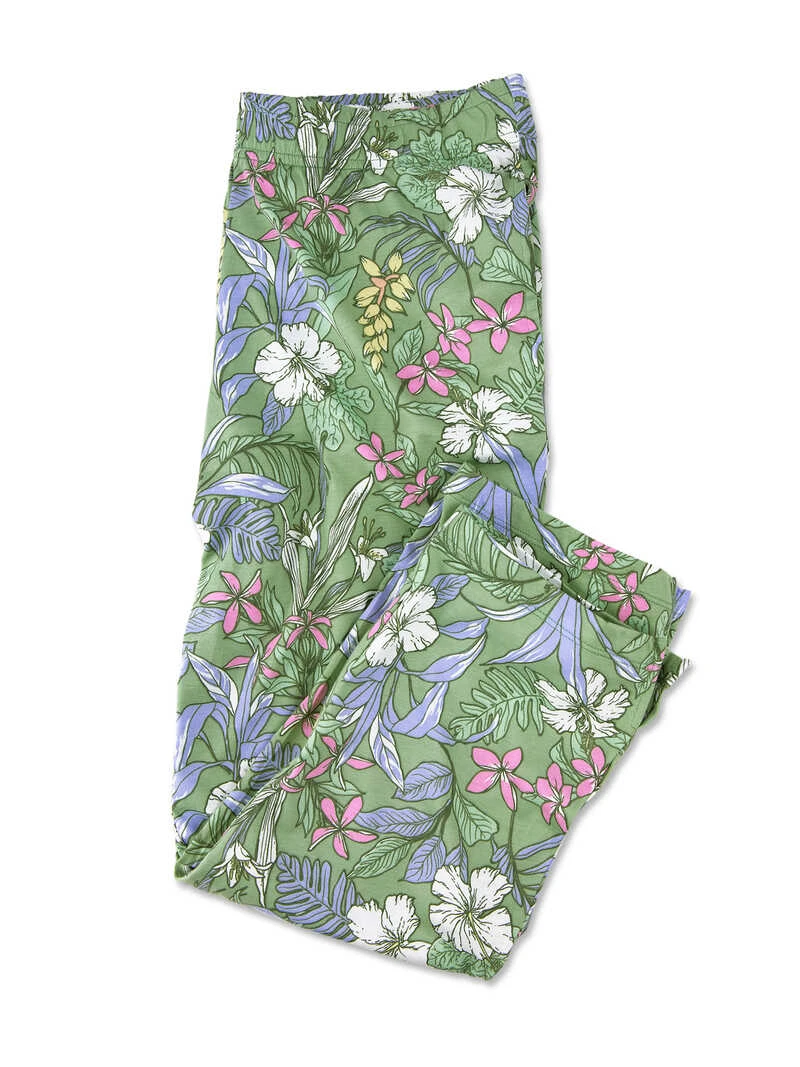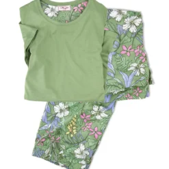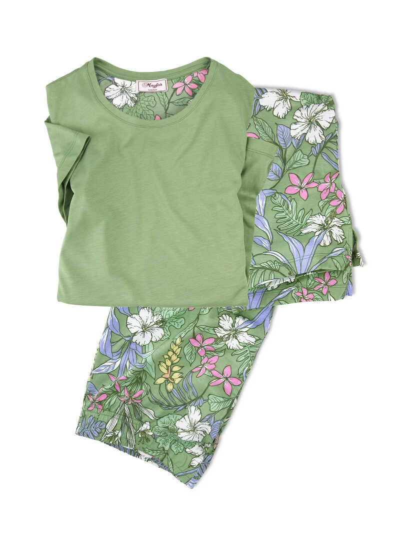 Dieser Pyjama schafft spielend leicht den Spagat zwischen modischer Nachtwäsche und lässiger Homewear. Ein Blüten- und Blätterprint auf frischem Grün macht die Hose in sommerlicher 3/4-Länge zum absoluten Blickfang. Das Rundhalsshirt greift das Grün der Hose auf. Hose mit Rundumgummizug und Seitennahttaschen. Beides in bequemer und gerader Passform (Comfort Fit). Farbe: Salbeigrün. Original Mayfair.