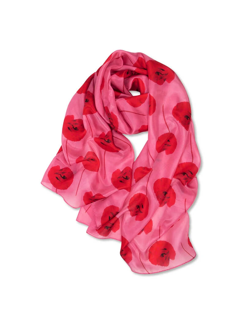 Wie ein leichter Sommerwind umhüllt Sie dieser duftig zarte Schal aus reiner Seide. Leuchtend roter Klatschmohn auf pinkfarbenem Fond lässt Ihren Teint strahlen. Kein Wunder, die erstklassige, leicht glänzende Seidenqualität bringt die Farben richtig zum Leuchten. Vorlage für die Mohn-Drucke sind historische Illustrationen der Künstlerin Lilian Snelling und stammen aus den Archiven der englischen Gartengesellschaft »Royal Horticultural Society« (RHS). Mit gesteppten Kanten. Größe 200 x 65 cm. Farbe: Pink-Rot. Original Helen Leigh.