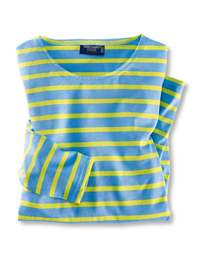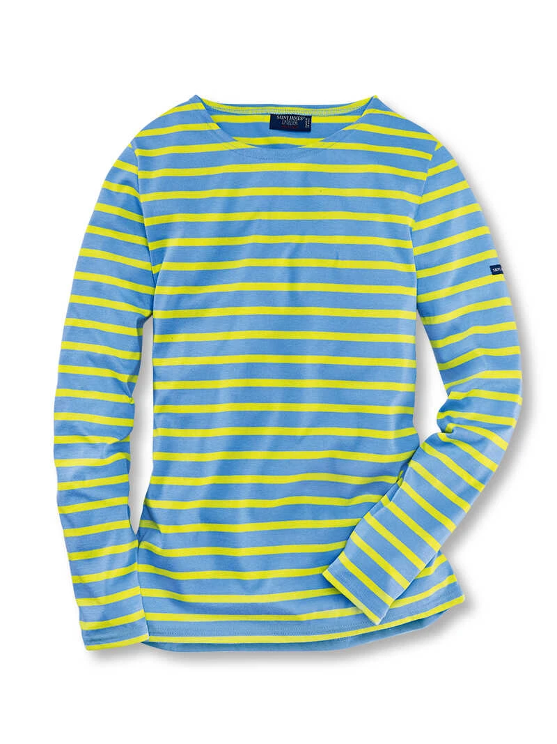 Das Ringelshirt hat sich zu einem coolen Basic entwickelt und darf in keinem Kleiderschrank fehlen. Für frischen Wind sorgt diesen Sommer die Farbedition: Hellblau mit Lemongelb. Sie bringt Pepp ins Styling. Saint James legt schon immer Wert auf allerbeste Qualität und hat auch dieses Longsleeve aus leichtem, superweichem Baumwolljersey hergestellt. Schlanker Schnitt (Modern Fit) mit rundem Ausschnitt und langen Ärmeln. Länge ca. 66 cm. Farbe: Hellblau-Lemon. Original Saint James.