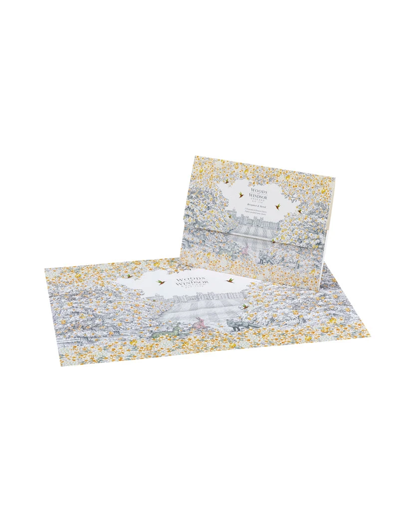 Legen Sie die großen Bögen im Schrank oder in der Kommode aus, und Ihre KIeidung wird angenehm frisch duften! Packung enthält 5 Duftbögen mit dem Duft von Zitrusfrüchten, Bergamotte und Neroli, Größe 50 x 33 cm, die sich bei Bedarf leicht zuschneiden lassen. Wunderschön präsentiert in edler Hülle mit dem Motiv von Windsor Castle.