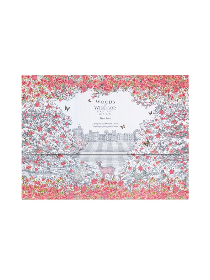 Legen Sie die großen Bögen im Schrank oder in der Kommode aus, und Ihre KIeidung wird angenehm frisch duften! Packung enthält 5 Duftbögen, mit betörendem Rosenduft mit Noten frischer, grüner Veilchenblätter, Größe 50 x 33 cm, die sich bei Bedarf leicht zuschneiden lassen. Wunderschön präsentiert in edler Hülle mit dem Motiv von Windsor Castle.