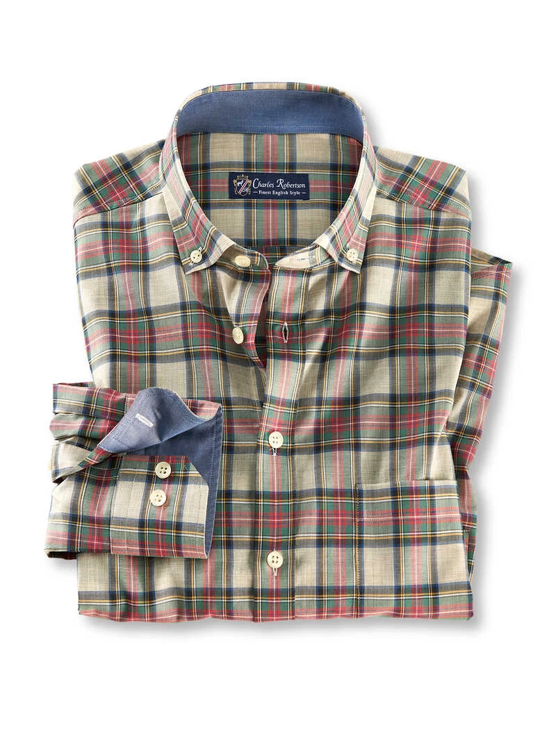 Dieses leichte Sommerhemd fällt durch sein prägnantes, typisch englisches Check »Dress Stewart« sofort ins Auge! Sein hochwertig gewebtes Baumwoll-Karomuster bekommt durch das Melange-Garn eine einzigartige Optik. Dabei ist der sommerliche Stoff superleicht, schön weich und angenehm auf der Haut zu tragen. Überzeugend ist auch die hervorragende Verarbeitung und gute Ausstattung: mit »Button-Down«-Kragen, aufgesetzter Knopfleiste, einer Brusttasche, gerundetem Saum und Zweiknopfmanschetten. Besonders zur Jeans, Cargo oder hellen Chino ist dieses Hemd in seinem neuen Sommer-Look ein Must-have! Normale, schlanke Passform (Modern Fit). Farbe: Rot-Grün-Beige. Original Charles Robertson.