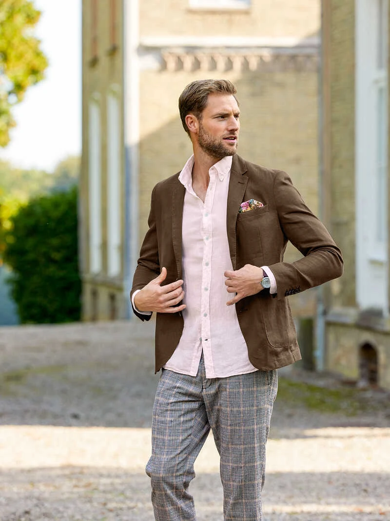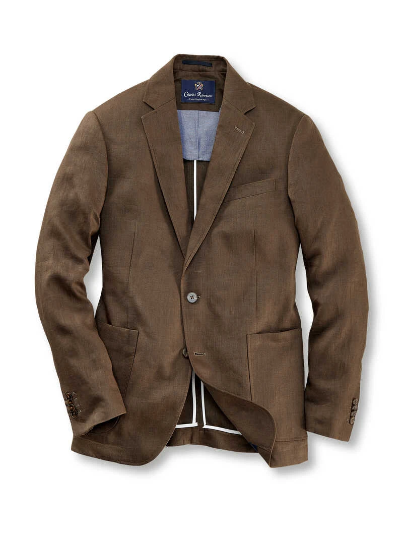 Charakteristisch für Leinen ist seine Leichtigkeit und die kühlende Wirkung – so sehen Sie auch bei steigenden Temperaturen immer noch top gekleidet aus. Der schöne neue Braunton ist ein absoluter Hingucker und passt hervorragend im Casuallook zum weißen T-Shirt oder klassisch zum blauen Hemd. Das Sakko ist halbgefüttert um den leichten Look zu unterstreichen. In Zwei-Knopf-Form mit zwei aufgesetzten Taschen, einem Rückenschlitz, einer Brustleistentasche und zwei Innentaschen. Normale Passform (Regular Fit). Länge ca. 75 cm. Farbe: Braun. Original Charles Robertson.