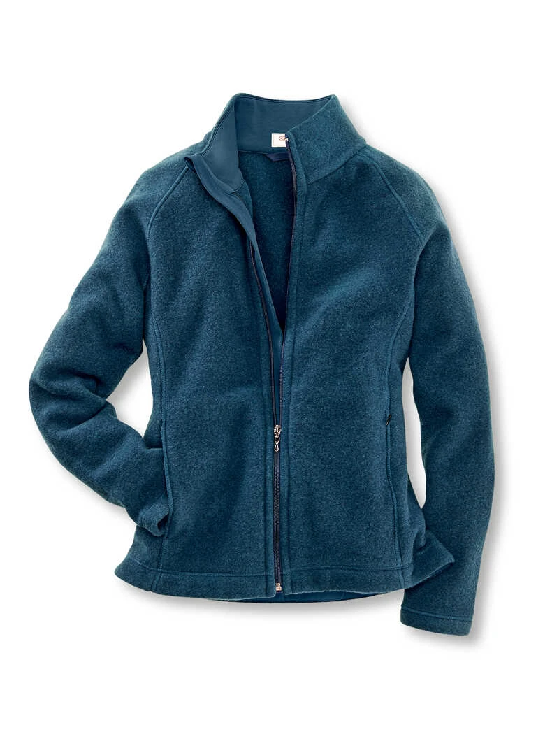 In der Übergangszeit solo getragen und bei eisigen Temperaturen unter einer Jacke, so wird die Walkjacke rund ums Jahr zu einem unentbehrlichen Basic. Das Besondere: Sie besteht zu 100% aus Wolle und hält daher schön warm und ist atmungsaktiv. Der sportive Look wird durch den hochschließenden Stehkragen, die Raglanärmel, zwei Schubtaschen mit Reißverschluss, Overlocknähten sowie einem frontalen Zipper unterstrichen. Der Blauton dieser flauschig weichen Outdoorjacke ist wunderschön und passt sich allem an. Leicht taillierte Passform (Regular Fit). Artikel fällt klein aus. Länge ca. 64 cm. Farbe: Blue. Original Mayfair.