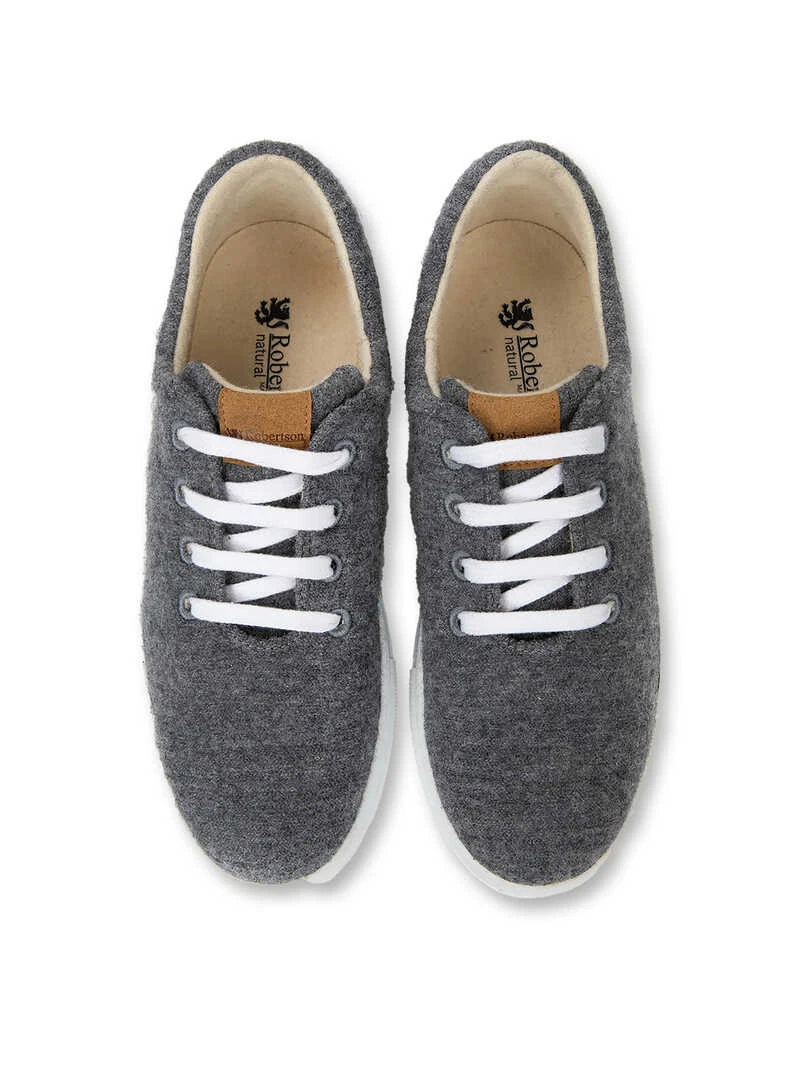 Dieser neue »Merino-Sneaker« von Robertson Natural wird aus feinster Schurwolle gefertigt und das natürlich rein ökologisch, wie man es von der Marke kennt. Dabei vereint die Schurwolle ihre besten Eigenschaften: sie reguliert perfekt das Fußklima, ist atmungsaktiv und transportiert Feuchtigkeit sofort nach außen. Die stabile, leichte Sohle in Weiß ist ein toller Kontrast. Mit herausnehmbarer Sohle und gepolstertem Schaftrand. Farbe: Grey-Melange. Original Robertson Natural.