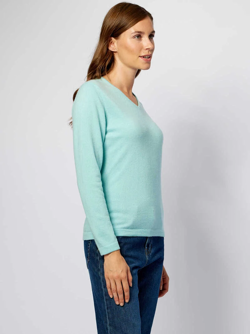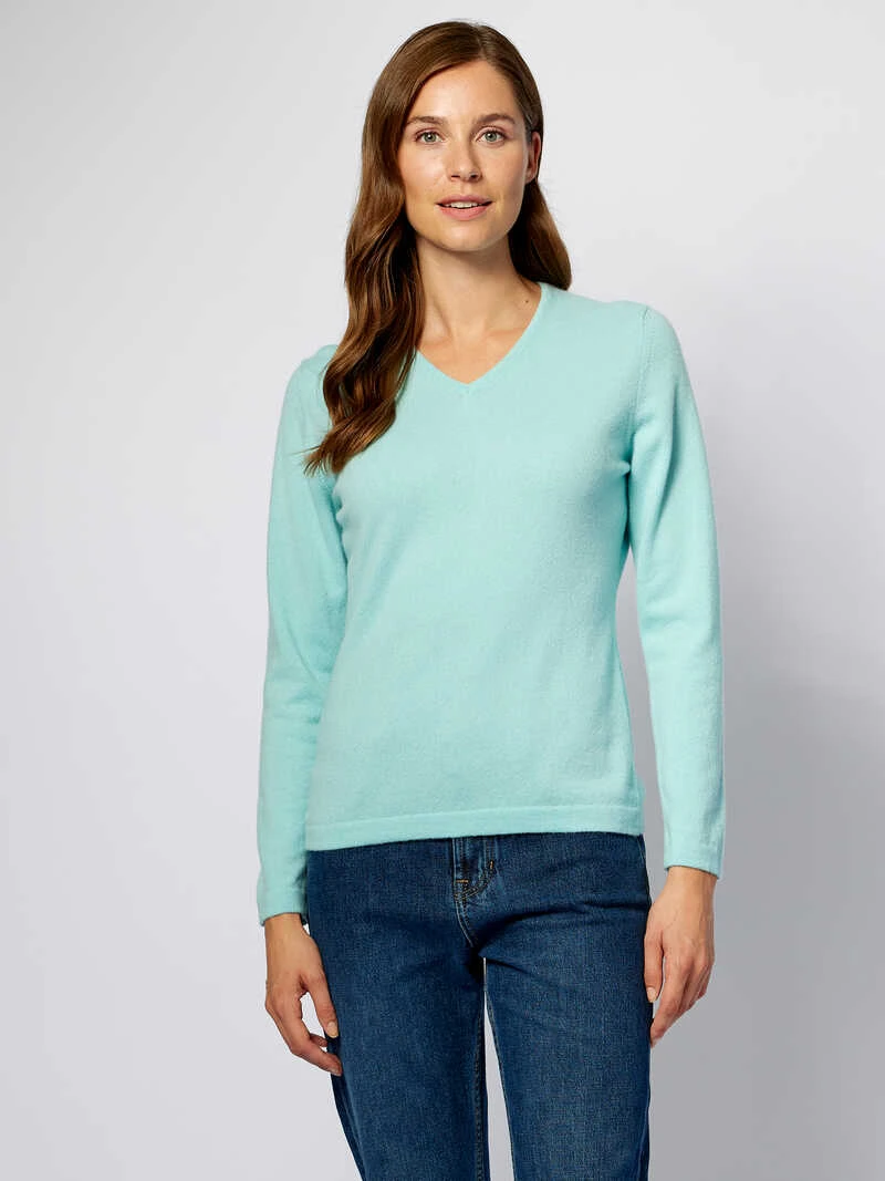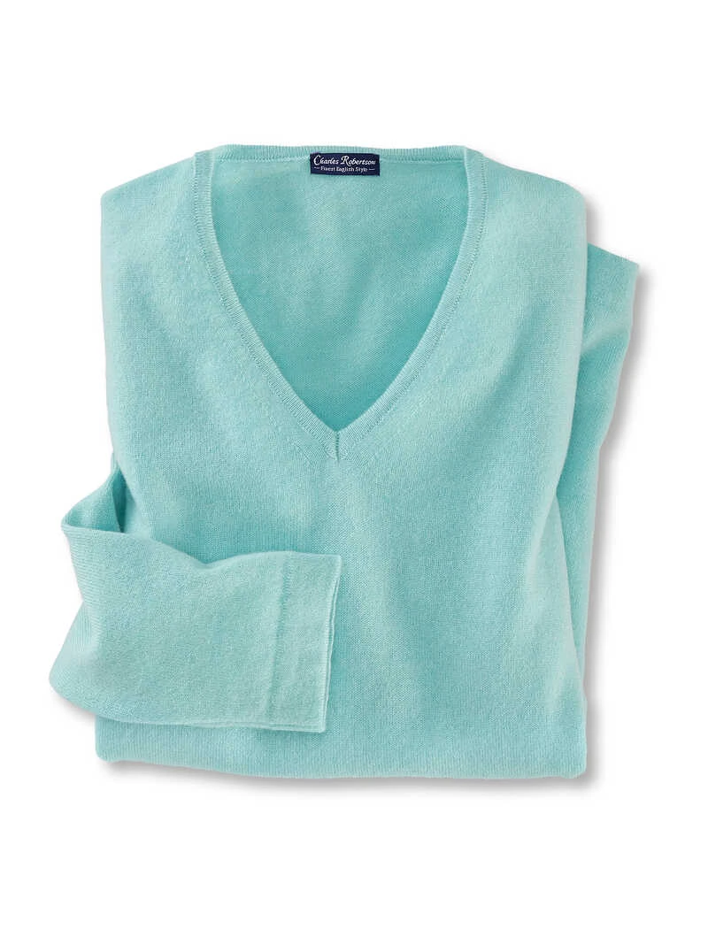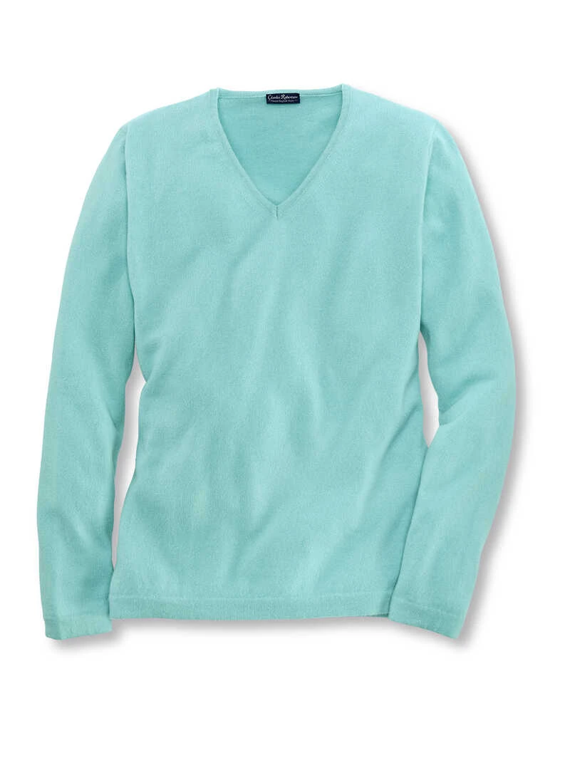 So fühlt sich echter Luxus an! Flauschzart, fein und superweich – dieser wunderschöne Pullover ist aus 100 % Kaschmir. Schottlands führender Kaschmirspinner Todd & Duncan, ein Traditionsunternehmen seit 1897, hat dieses erstklassige Garn gefertigt. Zur Öffnung der kostbaren Fasern nutzt es das natürlich reine Wasser des Loch Levens, einem großen Süßwassersee in Schottland. Ein wichtiger Prozess für die gleichmäßige Färbung und den unsagbar weichen Griff. Deshalb kommt das schmeichelnde Aqua dieses Pullovers so wunderbar zum Vorschein. Flache, hochwertige Saumabschlüsse und ein V-Ausschnitt runden das Design aufs Schönste ab. An diesem edlen Stück werden Sie garantiert viele Jahre Ihre Freude haben! Gerader Schnitt (Regular Fit). Länge ca. 65 cm. Farbe: Aqua. Original Charles Robertson.