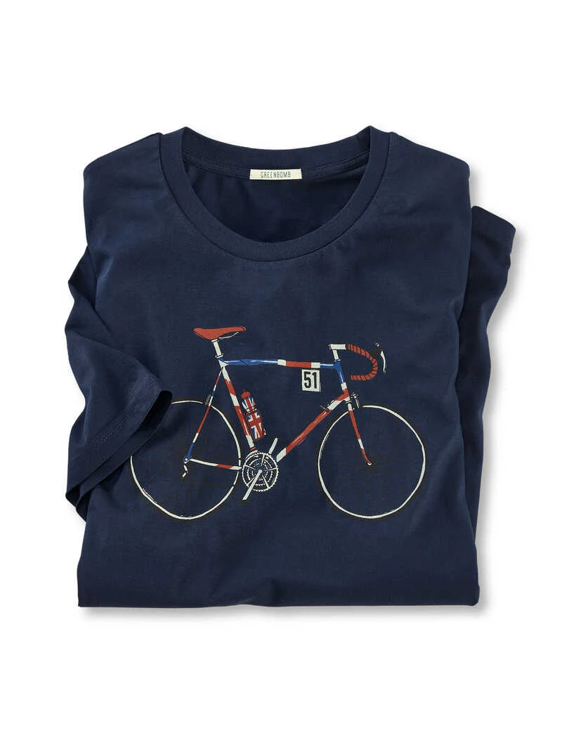 »Fair & Organic« – was viele Labels gerne machen würden, ist bei der Modemarke Greenbomb schon selbstverständlich! Das GOTS-zertifizierte (Global Organic Textile Standard) Unternehmen vereint nachhaltige Mode und lässiges Design. Wie bei diesem coolen T-Shirt »Uptown Wheel«, auf dem ein Bicycle-Print für sportives Flair sorgt. Auch die Jersey-Qualität aus bester Bio-Baumwolle ist schön fest und trotzdem herrlich weich auf der Haut. Moderne, gerade Passform mit Rundhals. Modern Fit. Länge ca. 78 cm. Farbe: Navy. Original Greenbomb.