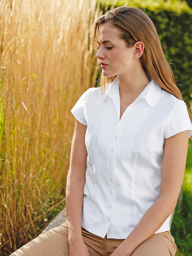 Wenn Sie an warmen Tagen gut angezogen sein möchten, dann greifen Sie zu dieser Kurzarmbluse! Mondän, in strahlendem Weiß mit einer Prise Raffinesse – genau das Richtige für den gepflegten Auftritt. Kurz geschnitten mit Taillierung (Modern Fit, figurbetonte Passform) zaubert diese Bluse eine tolle Figur. Der feminine Ausschnitt ist etwas tiefer und die Ärmel (Kappenärmel) etwas kürzer als bei anderen Blusen, was den gewissen Reiz bei diesem Modell ausmacht. Jetzt kann der Sommer kommen! Länge ca. 60 cm. Farbe: Weiß. Original Herringbone.