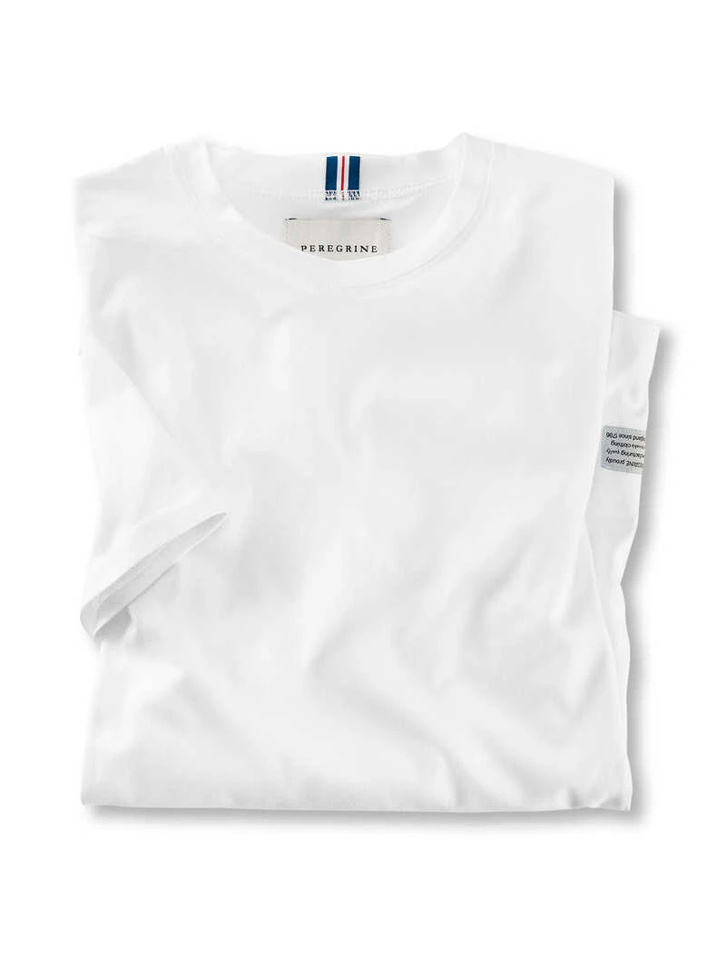 Ein weißes und ein dunkelblaues T-Shirt – simpel, zeitlos und doch schwer zu finden in einer richtig guten Qualität! Genau dafür ist die kleine Manufaktur Peregrine Clothing zuständig, seit 1796 in britischen Familienhänden und alles »Made in England« – vom ersten Entwurf bis zum letzten Nadelstich. Der Baumwoll-Jersey angenehm weich und blickdicht, so dass Sie dieses Shirt ganz nach Belieben solo tragen können, aber natürlich auch als Untershirt. Mit gestreiftem Ripsband am hinteren Rundhals. Normale, gerade Passform (Regular Fit). Länge ca. 73 cm. Farbe: Weiß. Original Peregrine Clothing.