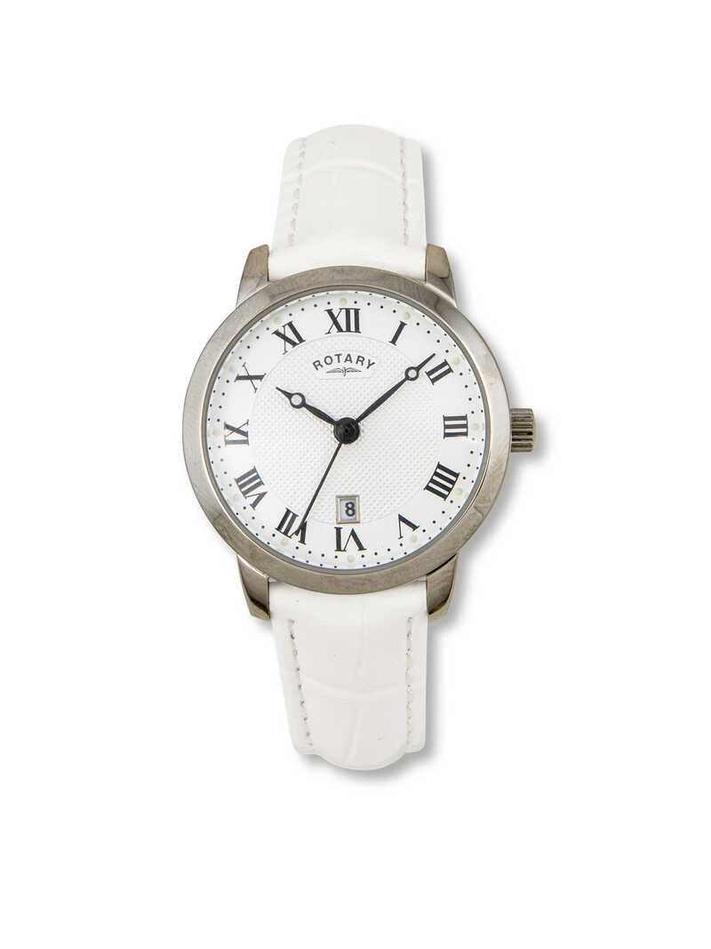 Diese sportive Uhr stammt vom renommierten Schweizer Uhrenfabrikanten Rotary und besticht durch ihr unaufgeregtes Design. Das weiße, geprägte Lederarmband harmoniert perfekt mit der Ausstattung dieser Uhr. Auch sonst hat sie alles was man sich wünscht: ein wasserdichtes Edelstahlgehäuse (bis 50m), ein Präzisions-Quarzuhrwerk, Datumsanzeige und hochwertiges Mineralglas. Fazit: Eine zeitlos schöne Uhr mit allerbestem Preis-Leistungs-Verhältnis. Durchmesser 29mm; Armbandbreite 14mm. Farbe: Weiß. Original Rotary, est. in Switzerland 1895.